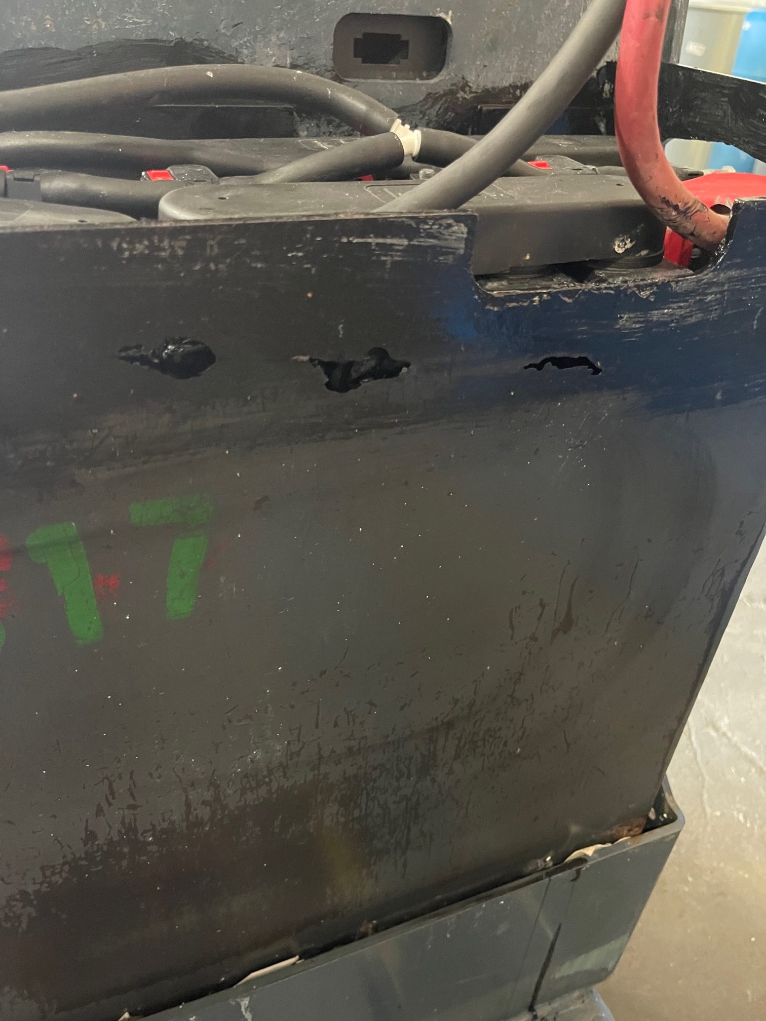 Note the holes in the steel case caused by corrosion left to sit on the battery.