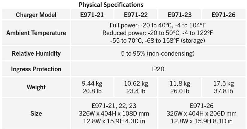 The EcoCharge® ECO970 single phase chargers are an efficient, flexible, compact and feature rich series of battery chargers that suit a wide variety of industrial charging applications, including materials handling, ground support and automated vehicles.