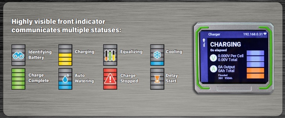 • Optional Can bus port, allowing a CAN equipped battery to control a charge.